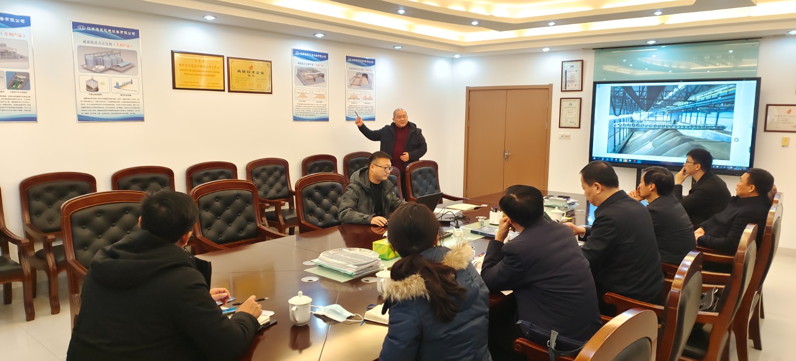 2022年2月10日,新年開工伊始,江蘇省泰州市海陵區(qū)政府領導團蒞臨江蘇通惠參觀考察,同時了解我公司產(chǎn)品——立筒倉臥式軌道清倉機、房式倉刮平機、房式倉散料強力出倉機、袋包裝船機、內港池式袋包散料二合一裝船機等。